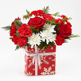 Price: $109.99 White lilies, red roses, Christmas fields of europe basket Product Tags: Next-day Delivery